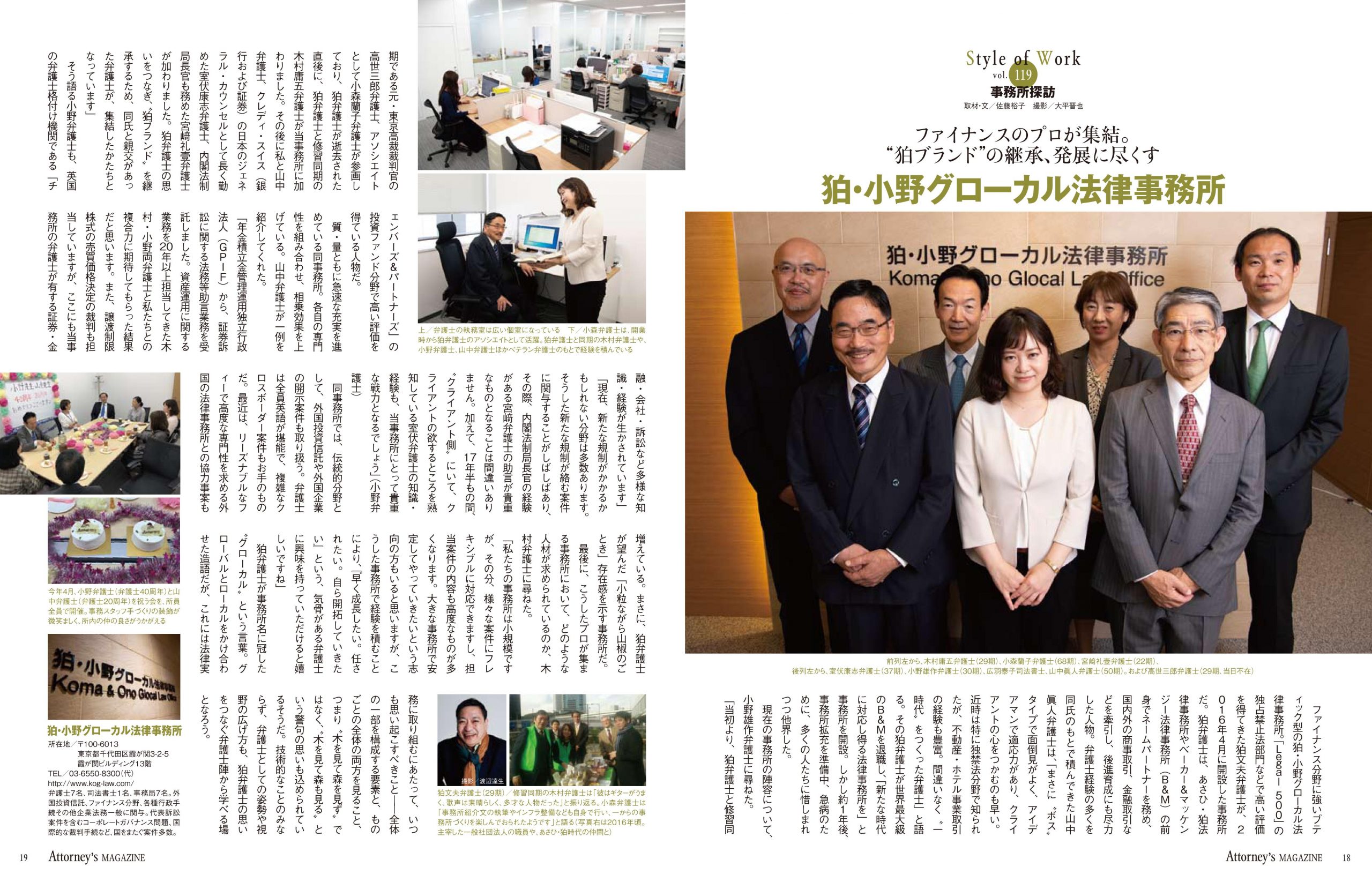 2018/07/05 Our firm has been introduced in Attorney’s MAGAZINE (vol.64) Our firm has been introduced in「Attorney’s MAGAZINE」(2018.07.01 vol.64).